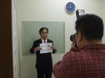 その合間を縫って北海道新聞社の「候補者写真撮り」が行われました。そこにはいつもながらに、カメラに向かって自然な顔をつくれない自分がいました。 (張)