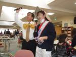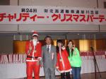 (写真:左、扇納め会で挨拶させていただきました。右、サンタさんはボランティアの大学生です)