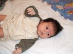 一方、1月3日に生まれた3人目の孫、ひなたちゃんは、茶の間で元気良く泣き続けていました。赤ちゃんの泣く仕事には、「やり残し」がないようです。(写真:生まれて35日のひなたちゃん)