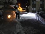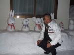 外は、春の陽気で気持ちのよいお天気でした。豊栄町内会が取り組んだ「雪あかり」は毎年、高い評価をうけています。その雪だるま達も温かさに解け、冬の妖精なのか、人間界から姿を消そうとしていました。(写真:マフラだけを残し解けはじめる雪だるま達)