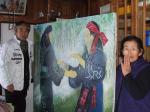 このほど、東旭川に住まいする農民女性画家・真鍋かや子さんを訪ねました。真鍋さんの夫は私の父と同級生でもあり、古くからお付き合いをいただいています。いま手がけている作品は、二人の女性アイヌを描いた大作。美しいメノコが袖にふれあって踊っています。花の精にも見えてきます。