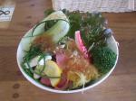 (写真:左、あぜ道より道の外観。右、サラダも目を楽しませ、新鮮な食感でした)