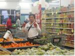 (写真:左・香菜とゴーチくん。右・スーパーマーケット風景)