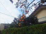 (写真:左/埋立地の跡利用を視察しました。右/軒先には至る所に柿。)