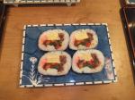 (写真:左/退職者連合の役員の皆さま。右/絶妙の太巻き。新たな発見でした。)