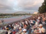 (写真:左、国際交流課との打合せ。右、旭川夏祭りの開会式場となった旭橋周辺)