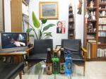 (写真:左/東光公園町内会の仮装余興。右/最後は池端理容院の茶の間で。)