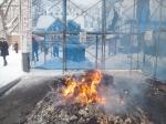 旭川神社のどんど焼きに行きました。正月飾りやお札、お守りなどが手向けられ、その火に手を合わせました。