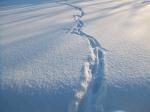 (写真:実家の畑には動物の足跡がありました。テンでもなく、兎でもなく、子熊でもなく、たぶん北キツネの足跡だと思います)