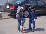 今日も早起きして、ご近所に「かおる通信」を配布しました。その後、家の周りのゴミ拾いに精を出しました。午後からは生まれ故郷の東旭川・桜岡、ペーパン地区を歩きました。農村の人々の心の優しさ、空気の綺麗さに元気をいただきました。夜は、「マダムケロコのお洒落パーティー」。女性の元気に圧倒され、今日の一日が終わりました。 (写真:孫の太志くんと匡志くん。この後、匡志くんがスノボーで遊んでころび、ボクサーのように顔がはれ上がっていました)