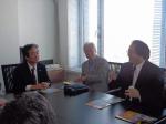 今日のハルピン市は快晴。ハルピン市も連休初日とあって、市民がドッと公園や繁華街にくりだしていました。 ハルピン市国際交流センター、山形県ハルピン事務所、ハルピン市人民政府などを訪ね、経済交流の現状を伺いました。どこも駆け足の視察でしたが、勢いのある中国経済の現状を知ることができました。また、ハルピン市人民政府外事公室主催の昼食会に招かれました。今後、お会いした皆さんとの友情を大切にしたいと思う、心温かい歓迎の一日でした。 (写真:左/ホテル窓からの朝のハルピン市。中央/山形県事務所の信坂所長と懇談。右/ハルピン市外事公室・高会民主任らの昼食歓迎会)
