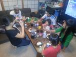 夜は、長女・亜以の家族、次女・香菜とゴーチくん、みんなで食事に出かけました。孫のひなたちゃんの移動の激しいことに大変でした。ゴーチくんが日本食になじんでくれたことにホッとしました。慌しかった食事を嬉しく思う自分でした。 (写真:久しぶりに家族での外食でした。)