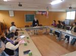 (写真:ふれあいサロンの講師、安田茂・愛宕地区社協事務局長。「福祉除雪サービス」のしくみについて説明していました。)
