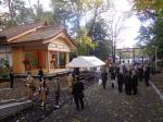 120周年事業では「神楽殿」や「神輿殿」が新築され、新しい神楽殿の舞台では、「悪魔ばらい」が舞い、世の安泰が祈られていました。明治25年に屯田兵により開拓の鍬が入れられた東旭川地区は、いつも旭川神社がその中心にありました。心の拠り所、地域のシンボルとして子々孫々、あり続けてほしいと願いました。 (写真:新築された神楽殿と神輿殿。)