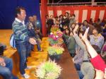 途中、愛宕冨士住民会館に立ち寄り、「愛宕ふれあいサロン」に参加しました。サロンには一人暮らしの高齢者、約30人が参加していました。その4分の3は女性で、「日本男児、もっとがんばろう」と、心で訴えていました。
