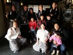 (写真:左/飛び入りでゴーチくんがお殿様役で舞台にあがりました。右/役者さん達と記念撮影。)