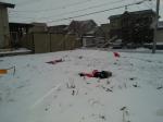 (写真:粉雪舞う中、孫たちが雪と戯れていました。)