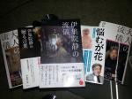 本を購入して、読みきれない本が山積みになっています。なんともだらしなく、もったいない事かと思い続けています。 そんななか、伊集院静の本にはまってしまいました。歯に衣着せぬ表現は、爽快感、最高です。遊びと酒と賭け事、出会いと別れ、様々な人生経験があってこそ、これだけのことを書け、ファンを引き付けているのだと思い、愛読しています。 (写真:最近の伊集院静の本。)