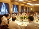 ハルピン3日目は快晴。美しい風と空気と日差しの、夏の都でした。今日は中国南方航空の役員と会談し、旭川空港へのチャーター便就航を要請しました。王東航(おうとうこう)代表からは、「お互い努力して年間数本から実現しよう」と応じてもらいました。また、日本の議会にあたるハルピン市人民代表大会を訪問し、王えい代表らの歓迎を受け、昼食をとりながら友情を深めました。午後からのマンション建設が林立する開発区や松花江(しょうかこう)を視察し、一段とハルピン市との友好を深めた一日でした。