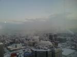 (写真:左/札幌日航ホテルからの今朝の札幌。右/豊寿老人クラブの新年風景。)