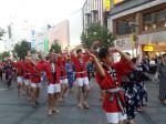 右/旭川音頭にのって市民舞踊パレード。うちわを振って沿道から応援しました)