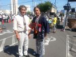 (写真:左/連合神輿にはあさっぴーも登場しました。右/右奥、ユンソクホ監督。左手前、監督の奥様です)