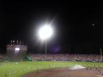 (写真:左/母と愛宕墓地で。右/ナイター元年。日ハム対オリックスの熱戦。旭川の夜空からは三日月さんも一緒に応援していました)