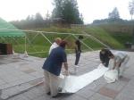 (写真:明日の雨対策で、表彰式用テントをひとはり増設しました)