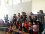 (写真:寒い中、案内状をもってきてくれた子供たち)