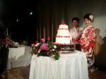(写真:柏川法英さん、大島佑季子さん。ウェーデングケーキ入刀)