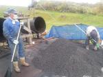 (写真:桜岡・若田貞信さん宅でのくん炭焼き。土づくりの名人です)