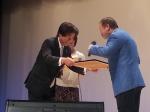 (写真:夕方、旭商先輩の菊川健一当麻町長を訪ねました。完熟トマトジュース「朝もぎ一番」と寒仕込み純米酒「龍の里」。道の駅で)