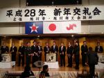 (写真:郷土民謡北海道連合会の新年会でカンパイの音頭)