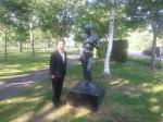 (写真:「福祉の文化化」をすすめる北海道療育園を訪問しました。緑の中に生える加藤顕清の裸婦像)