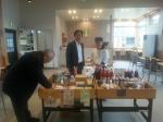 (写真:途中、比布町が立て替えた新駅舎の比布駅を見学しました。駅内のピピカフェで)