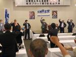 (写真/党旭川ブロック大会で団結ガンバローを三唱)